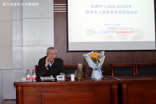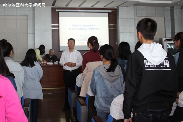 金秋送爽,丹桂飘香,在第三十四个教师节到来之际,为弘扬习近平总书记“教育为本”“尊师重教”的重要思想,地病中心隆重召开2018-2019年度研究生入学教育及新导师培训大会。会议由地病中心业务处高彦辉处长主持,中心全体2018级新生及新晋研究生导师参加。