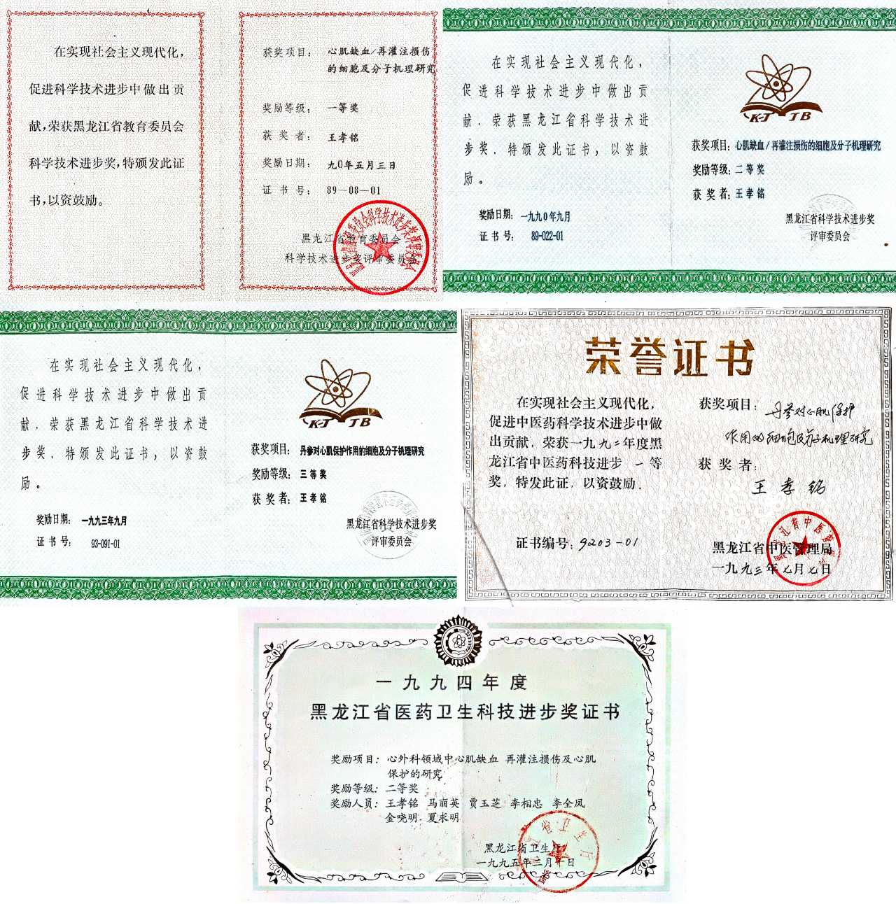 王孝铭教授的部分获奖证书