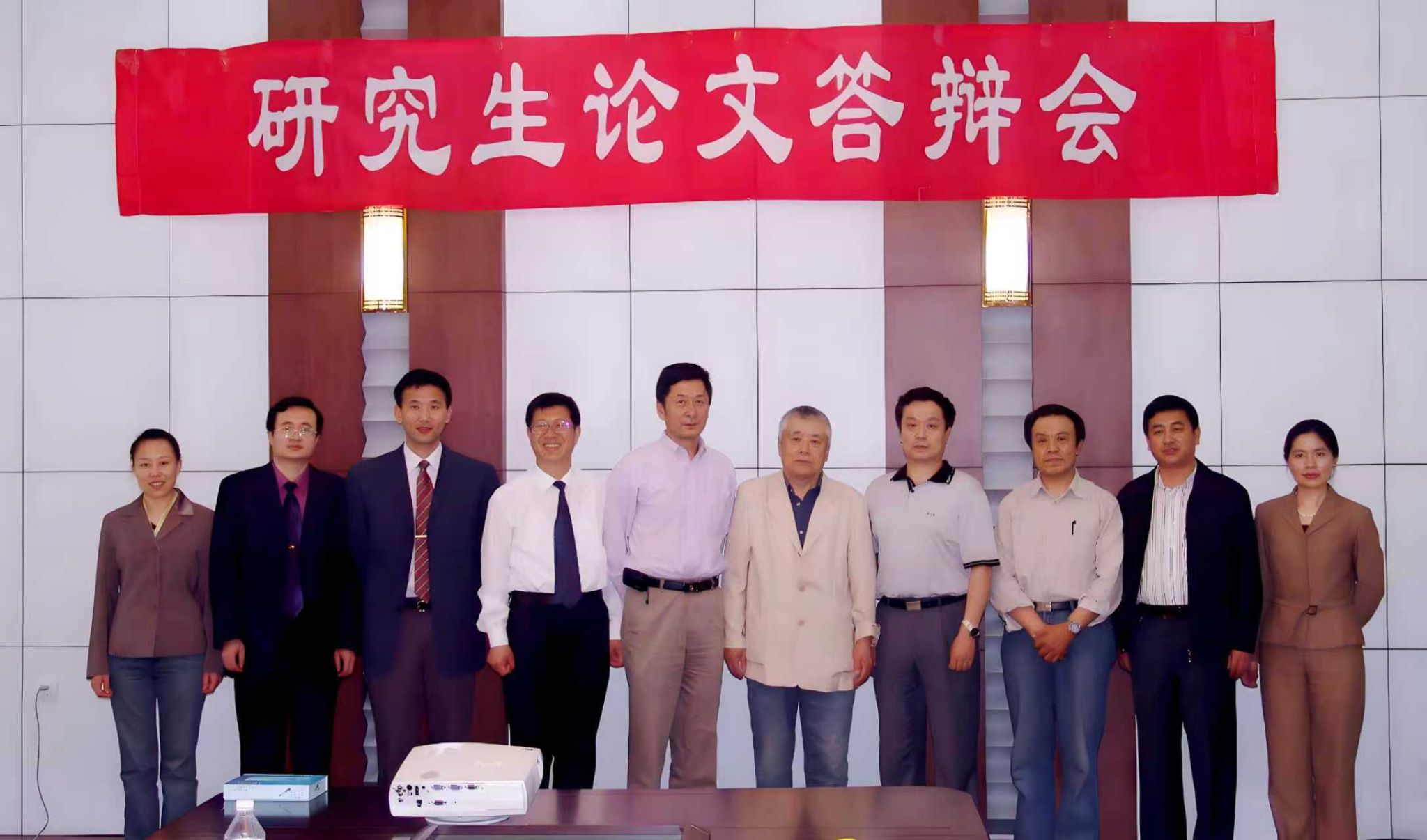 2007年5月,杨建伯教授(右五)指导博士研究生论文答辩。