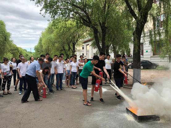 培训分两部分,第一部分,给同学们做消防讲座;第二部分,同学们使用灭火器灭火演练。