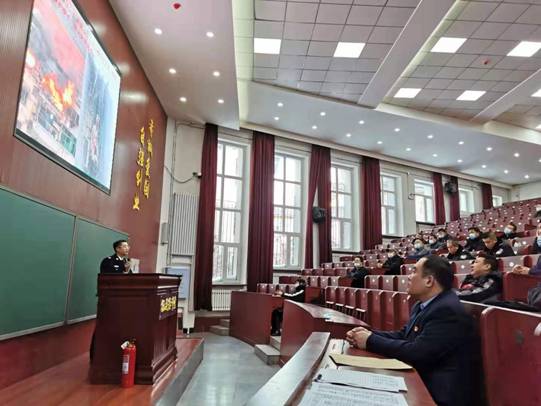 为落实学校领导加强冬季防火的工作部署,扎实推进省委、省政府、省教育厅关于开展今冬明春火灾防控的通知要求,12月3日下午,保卫处组织保卫处、后勤等有关单位在病原学馆伍连德大讲堂举办消防培训会。保卫处干警、门卫更值人员、后勤干部职工、鑫三星保洁公司等单位100余人参加培训。培训会由保卫处张伟东副处长主持。 首先,崔永励科长使用PPT,向参会人员通过2018年哈尔滨8.25北龙温泉酒店的重大火灾案例,结合我校的消防实际情况讲解消防法律法规、火灾现场处置、灭火器消火栓的使用、微型消防站的使用等消防知识。