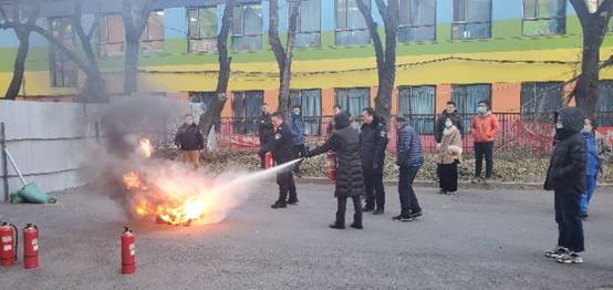 培训会后,全体人员来到成教学院东门前广场,实际操作灭火器打灭油槽内的火源。