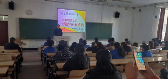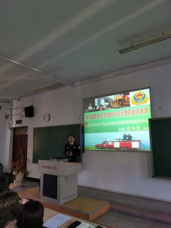 11月5日,14:00,在成教学院三楼三号教室,崔永励科长通过PPT,结合我校的消防实际情况向参会人员讲解消防典型案例、消防法律法规、火灾现场处置、灭火器消火栓的使用、微型消防站的使用等消防知识。随后,百家安消防宣讲中心的史主任向参会者讲解家庭、车辆、公共场所等火灾的防控和扑救。