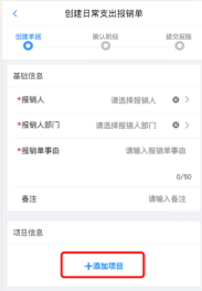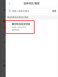 在手机端进入创建任一报销单,点击添加项目,如果在列表中存在项目则授权成功