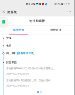答:手机上创建报销单-->预审通过-->财务会进行审核,预审不通过按照上面的提示消息进行修改报销单信息直到预审通过且财务审核后-->进入审批流后-->相关人员审批后-->显示审批通过-->前往报账机上进行投递-->收单后进行付款