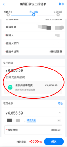 答:当发票金额大于报销金额时需修改报销单的费用明细金额,如图点击进入修改金额,输入实际报销金额: