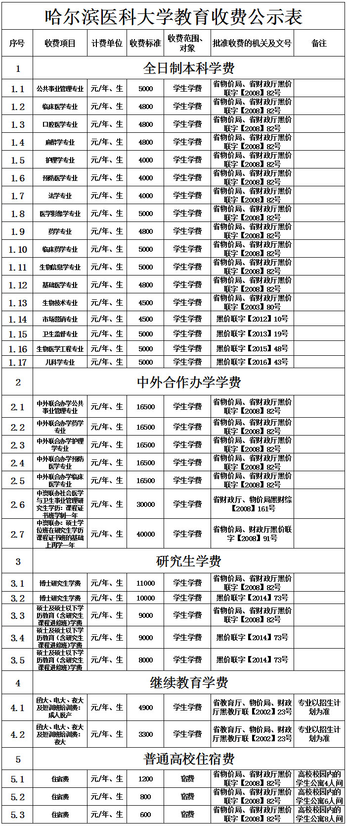各类学生收费标准表