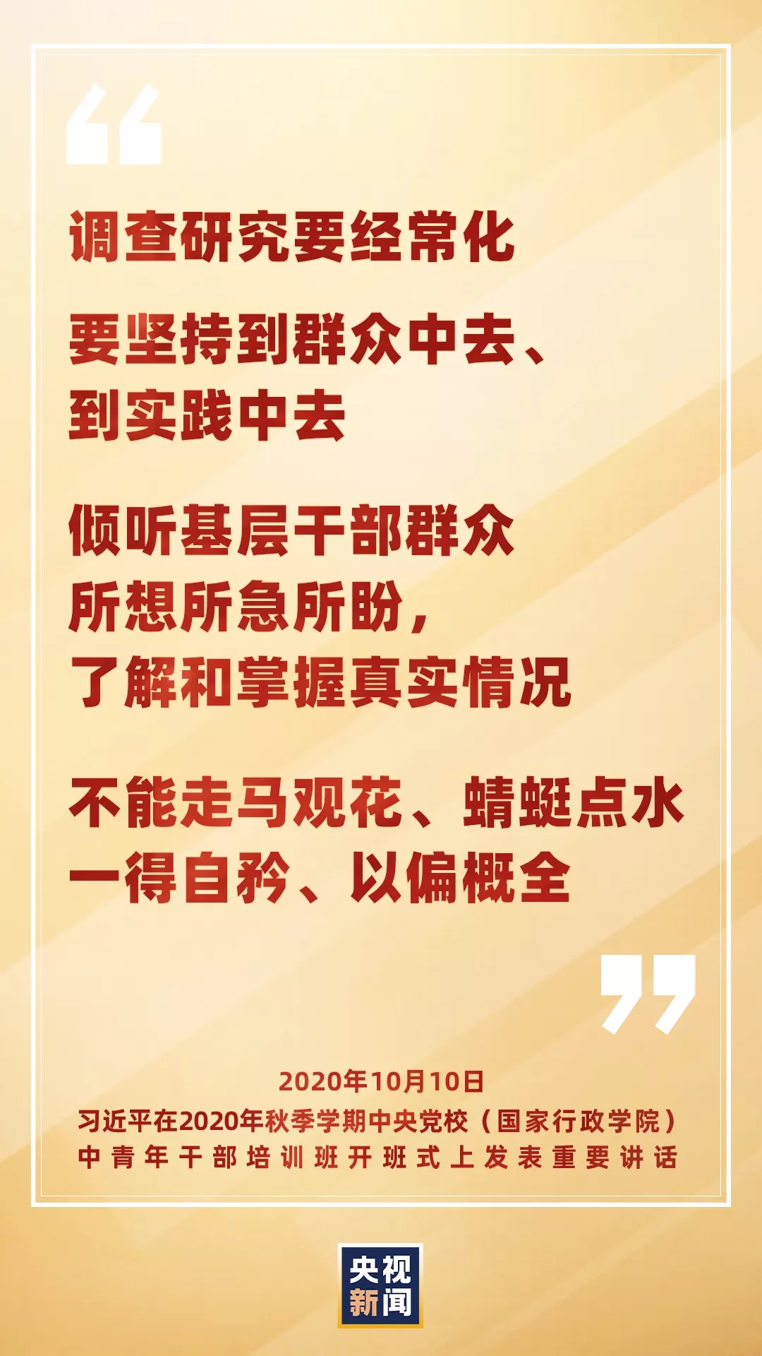 总书记指出,做调查研究不能走马观花、蜻蜓点水,一得自矜、以偏概全。