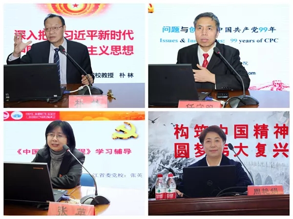 在培训班上,省委党校朴林教授从时代背景和思想根源、主要内容、鲜明特点、重大意义四个方面阐述了习近平新时代中国特色社会主义思想的深刻内涵;张英教授深度解读了《中国共产党章程》,促进学员们进一步端正入党动机,增强党性修养;马克思主义学院任守双副教授通过题为《问题与创新:中国共产党99年》的专题辅导,带领大家从党史、国史中寻找初心使命;学工部部长周艳娟教授引领学员们一同追溯闪耀着爱国奋斗光芒的历史人物与辉煌瞬间,激发了广大学员“构筑中国精神,圆梦伟大复兴”的爱国热情。