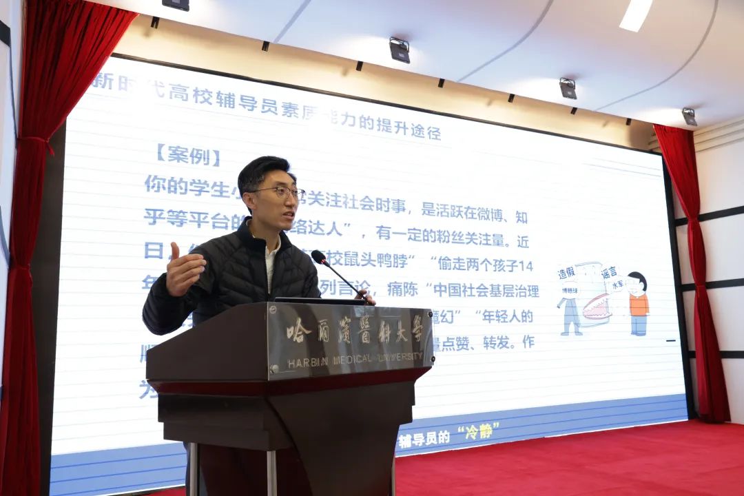 刘巍教授以《新时代高校辅导员素质能力的提升途径》为主题,围绕辅导员素质能力大赛和日常工作中的案例,理论与实践相结合,分享了他总结凝练的“三三五”案例工作方法,与在场老师一同思考探索辅导员发展路径——找准切入点、掌握关键点、把握突破点、扭住着力点、抓住落脚点。