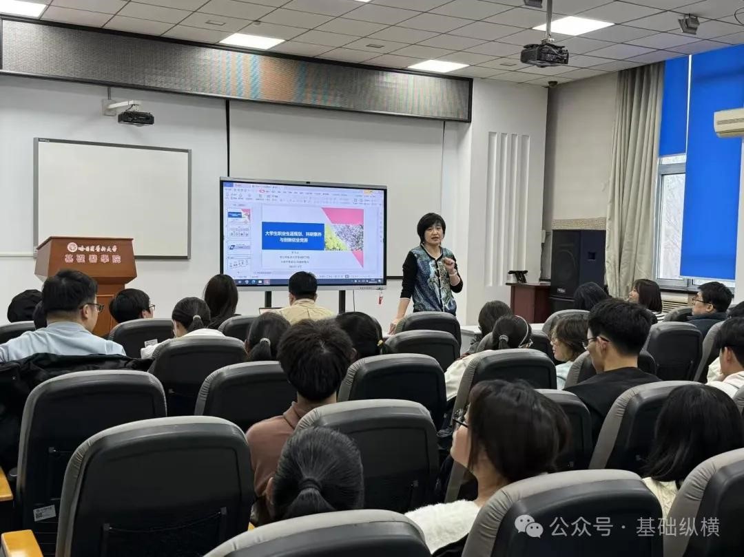基础医学院 为深入贯彻党的二十大精神,积极响应教育部提出的基础学科系列“101 计划”,提升基础医学教育教学质量,培养具有创新精神和实践能力的高素质人才。11月2 日,基础医学院面向2024级基础医学伍连德和基础医学5+2 专业新生,在基础医学院学术报告厅召开科研素养提升系列讲座。讲座特邀基础医学院副院长曹博、崔飞云教授从不同角度为大家进行分享交流。