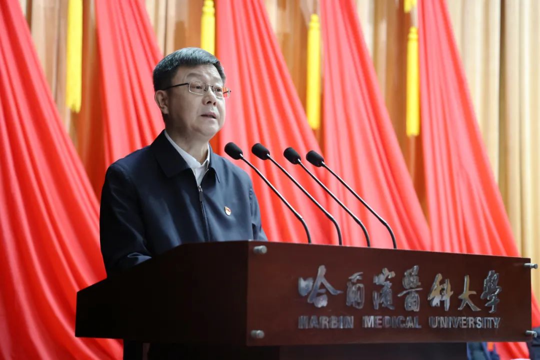 报告指出,本次党代会是在全校上下深入贯彻落实党的二十届三中全会、省委十三届六次全会和全国、全省教育大会精神,加快推进“双一流”建设、满怀豪情迎接百年校庆的关键时期,召开的一次十分重要的会议。报告强调,2023 年春节前夕,习近平总书记同我校附属第一医院视频连线,与医护人员和住院患者亲切交流,带来党中央的关怀和温暖,让我们感到无上荣光,极大地鼓舞和振奋了全校师生员工。五年来,省委、省政府始终关心和支持哈医大的发展,主要领导多次来校宣讲党的二十大精神、考察调研指导工作和看望慰问专家学者、医护人员。我们要把党中央、省委的关怀嘱托转化为学校高质量发展的生动实践,以新气象新担当新作为踏上新征程,共同谱写新时代哈医大追求卓越、勇攀高峰的辉煌篇章。