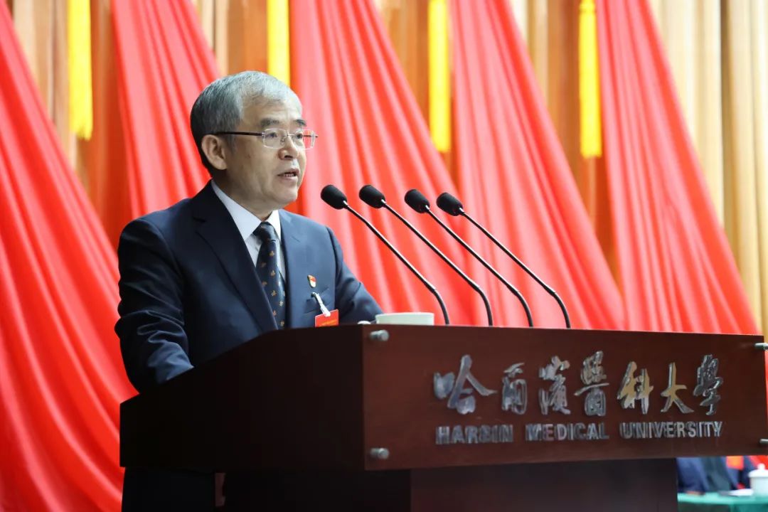 报告分析了面临的形势,明确了指导思想,提出学校未来五年的发展目标以及到2035年的远景目标。报告指出,面对即将开始的国家新一轮“双一流”评选,迎接即将到来的哈医大百年校庆,时间紧迫、任务重大,唯有坚定目标、开拓创新,以正确的战略策略应变局、育新机、开新局,依靠顽强毅力打开事业发展新天地。要坚持以习近平新时代中国特色社会主义思想为指导,全面贯彻党的二十大和二十届二中、三中全会精神,深入学习贯彻习近平总书记关于教育科技人才的重要论述,全面贯彻党的教育方针和卫生与健康工作方针,坚持党的全面领导,坚持社会主义办学方向,落实立德树人根本任务,遵循医学教育发展规律,践行“坚持为学生学者办学立校、坚定以学术学风兴学强校”的办学理念,秉持“聚合力、惠人才、优学科、固本科、兴临床、强学术、厚文化”的工作思路,以新医科建设为抓手,一体推进教育改革发展、科技创新和人才培养,满怀豪情迎接百年校庆,信心百倍开启国内一流、国际知名的研究型医科大学新征程,为加快教育强省和现代化建设,为龙江高质量振兴发展提供有力支撑。