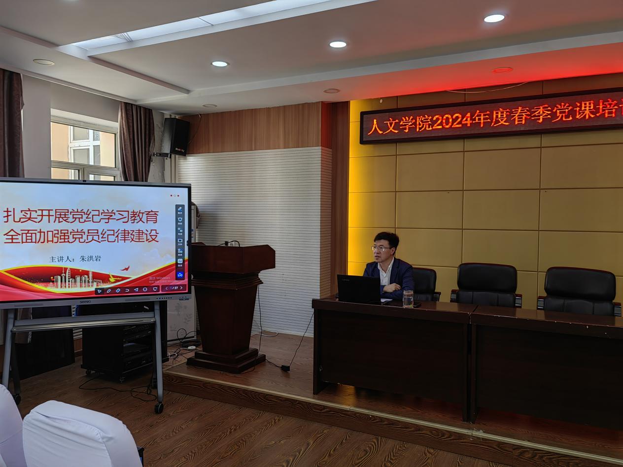 人文学院副院长朱洪岩以《扎实开展党纪教育 全面加强党员纪律建设》为题,阐述了党纪教育的历史沿革与现实意义。他提醒同学们,纪律是党的生命线,是维护党的先进性和纯洁性的重要保障。朱副院长的讲座,如同一面镜子,映照出同学们内心的自省与警醒。
