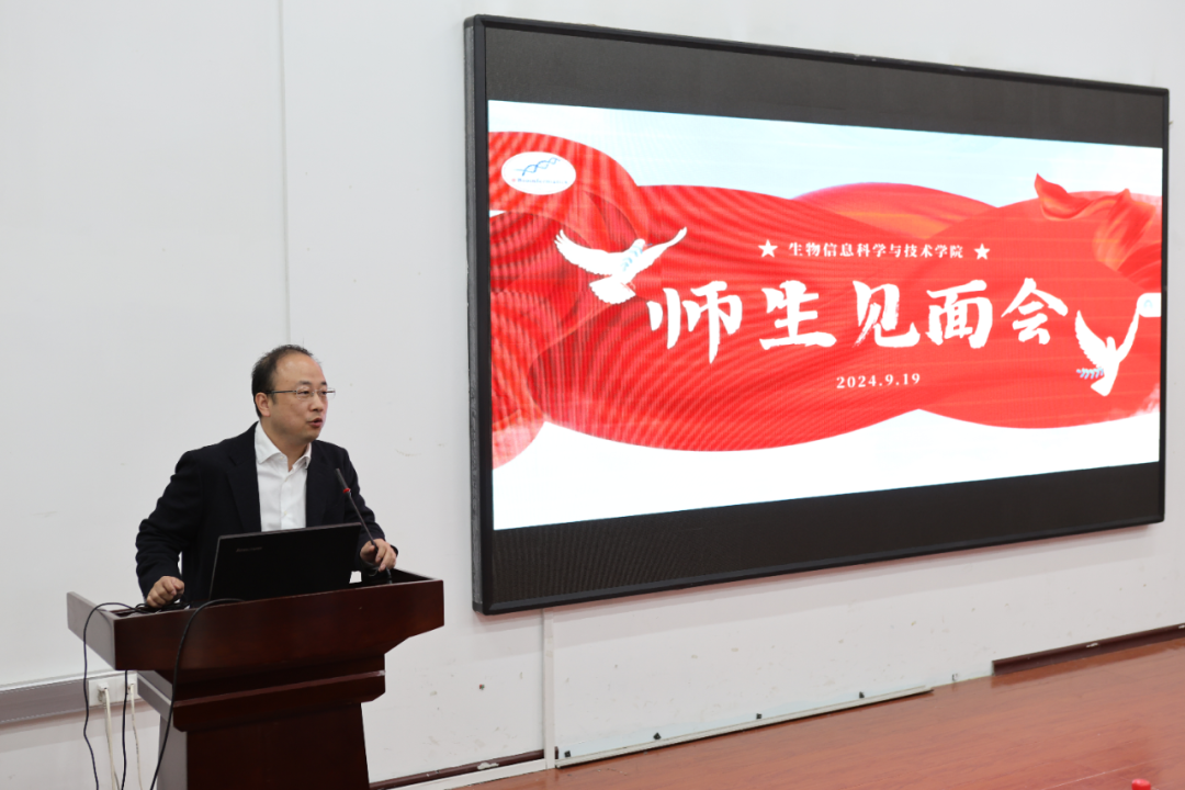 为增进师生交流、传承学院文化,同时进一步激发学生专业学习兴趣、增强学院的凝聚力与向心力,学院于2024年9月19日在学院大会议室举办了2024级新生师生见面会暨入学教育。学校党委副书记金焰,学院党委书记肖云,院长徐娟,副院长程亮、顾云燕,学生党总支书记宁尚伟,计算生物学教研室主任张云鹏,青年教师代表,新生兼职班主任,全体辅导员出席会议,师生见面会由宁尚伟主持。各位专家以最诚挚的热情和最详尽的指引,为新生们的大学旅程铺设了坚实的基石。
