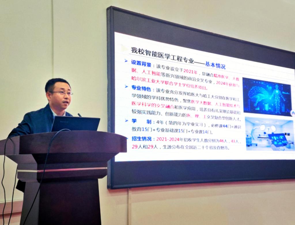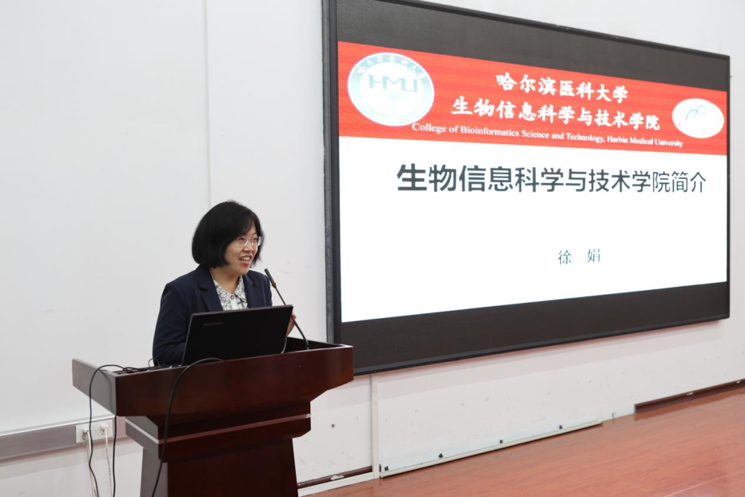 徐娟教授进一步分析大数据时代趋势,由精准医疗引出学院、专业的概况介绍,对学院在人才培养及科学研究领域的显著成就以及专业在科研领域的杰出贡献进行简要叙述。同时详细介绍了生物信息学、智能医学工程、生物医学工程三个专业的发展方向,并对2024级新生的到来表示热烈欢迎。