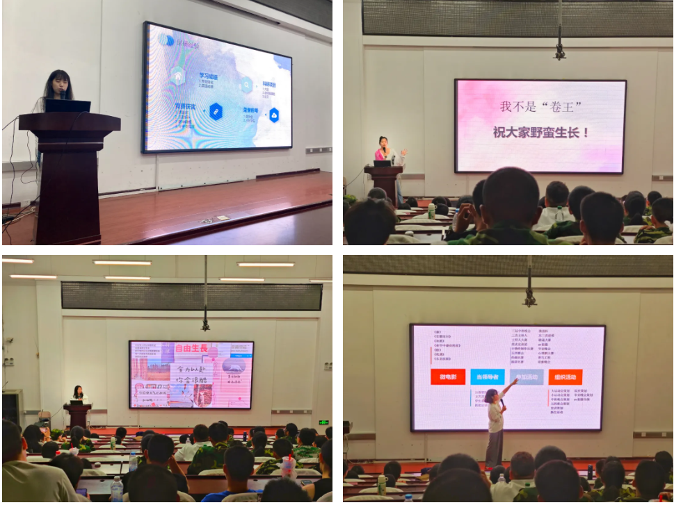 活动伊始,辅导员刘畅作为主持人发表了热情洋溢的开场致辞,同时邀请辅导员王亚辉、王景慧分别发言,引用“学如逆水行舟,不进则退”等古语来鼓励新生们珍惜大学时光、勇于探索未知,通过向身边的优秀榜样学习,来不断追求成长与卓越。三位辅导员的话语中透露着对新生深切的期望与关怀,为本次分享会奠定了积极向上的基调。
