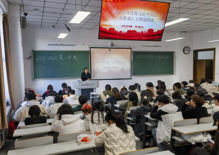 公共卫生学院学生党总支于10月12日召开了本学期第二次学生干部例会和关于学习宣传贯彻习近平总书记《论教育》工作动员会。学院副处级辅导员王国华、年级辅导员刘洋、曹璨、张程,学生会、团总支、学生自律与管理服务委员会全体学生干部参加会议。
