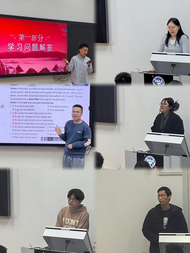 冯明玉同学接着系统且详细地分享了大三大四两年各个科目的学习经验和方法,她特别强调在学习过程中总结知识点异同的重要性。徐嘉锐同学着重分享六级的学习经验,分别从六级考试各部分的学习重点和方法切入,带来了满满的干货,对同学们的应试要求或者就业需求都有很大的帮助。赵爽同学建议学习中要坚持以教材为核心,夯实基础知识,深入理解知识点以帮助构建知识框架。她还提出了要保持积极乐观的心态,遇到挫折要及时调整,可以大胆与辅导员交流谈心,排解压力。柏家和同学侧重于分享自己的推免经验,他详细解读了成绩、竞赛加分的规则,介绍了夏令营、预推免和正推免的关键时间节点,强调了基础成绩、英语以及科研经历在推免过程中的关键作用。最后,谢文睿同学作为跨专业的代表,分享了自己的跨专业经验,他强调了兴趣在跨专业选择中的核心地位。
