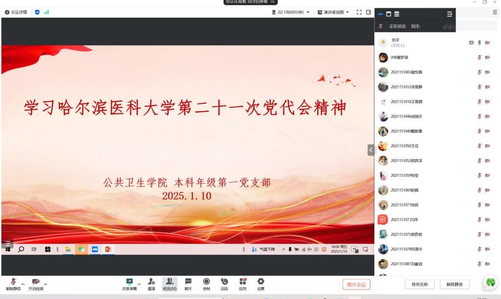 2025年1月3日,公共卫生学院本科学生第三党支部组织2020级预防全体同学学习学校第二十一次党员代表大会精神宣讲会。