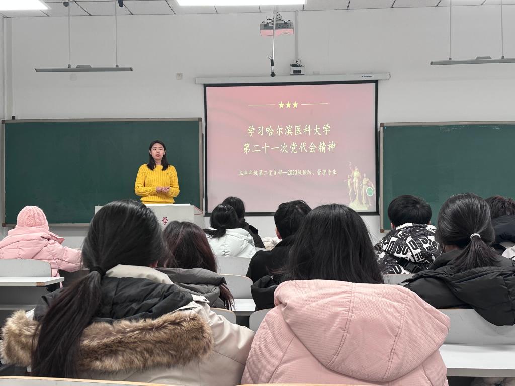 党支部书记王国华在宣讲会上就自己的学习与理解进行分享,也对大会报告内容进行了深度解读,要求同学们一定铭记党代会的指导思想,高举习近平新时代中国特色社会主义思想伟大旗帜,深入贯彻党的二十大精神、习近平总书记关于教育的重要论述、习近平总书记视察黑龙江期间的重要讲话重指示精神和省第十三次党代会精神,教育强国担使命,百年华诞谋新篇,为建设国内一流、国际知名的研究型医科大学而毅勇前行。