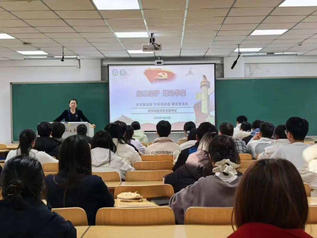 为深入学习贯彻习近平新时代中国特色社会主义思想,提升新发展党员政治理论水平,药学院于3月28日组织开展“红色熔炉,理论学堂”新党员党章考试。2024年度新发展党员共计40人参加考试,学院党委副书记李霞参与监考并讲话。