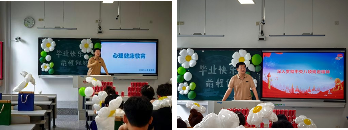 6月18日,年级辅导员张程召开了毕业年级大会,这是一场为即将毕业的同学们精心筹备的盛会,为同学们的大学生活画上圆满句号,同时为同学们的未来人生道路指引方向。本次大会内容丰富,形式多样,涵盖了毕业寄语、离校注意事项、个人成长规划以及心理健康教育等多个方面,同时还进行了中央八项规定精神主题教育,让同学们在收获感动与温暖的同时,也明确了未来的发展方向。