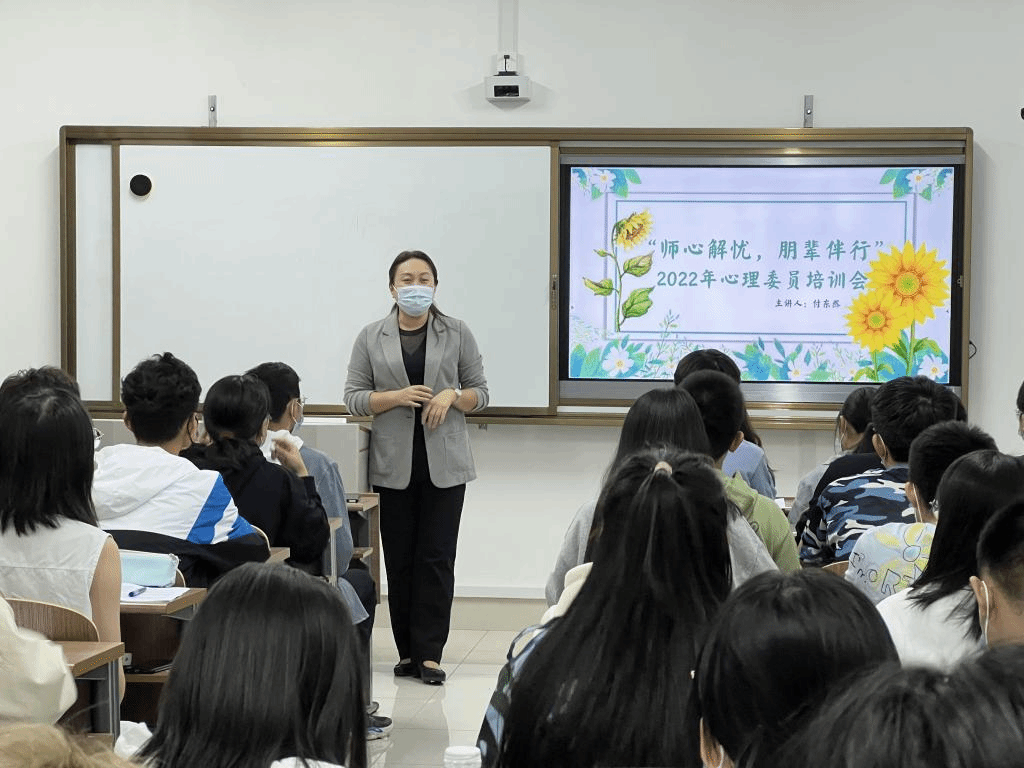 为更加深入地推动大学生心理健康教育,在新生群体中普及心理健康知识,引导大学生积极主动关注自身心理健康,促进大学生健康全面发展,2022年9月25日,校大学生心理健康发展中心举办了“师心解忧,朋辈伴行”2022级心理委员培训会。大学生心理健康教育中心主任付东然老师到会并担任主讲。