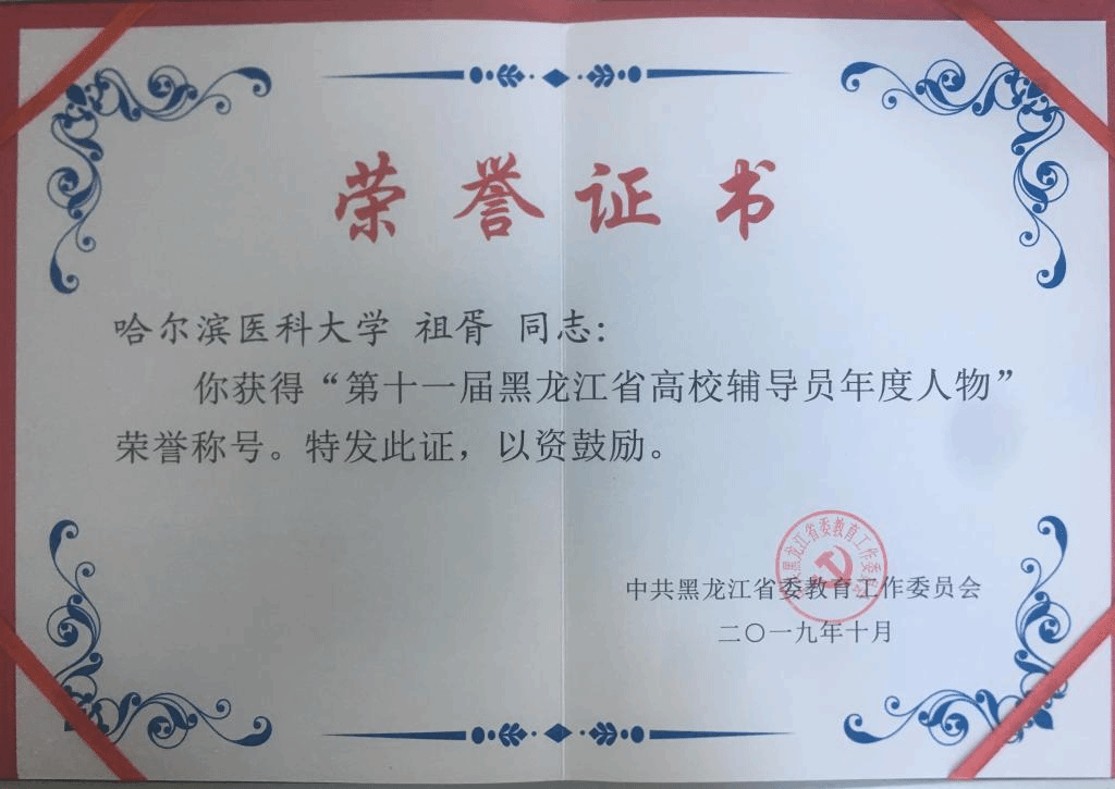 近日,我校附属第二医院辅导员祖胥同志荣获“第十一届黑龙江省高校辅导员年度人物”称号。高校辅导员年度人物评选是由黑龙江省委高校工委、教育厅举办的全省规格最高、最为权威的辅导员工作业绩评选。评选旨在选树一批师德高尚、爱岗敬业、潜心育人的优秀辅导员,宣传一批辅导员典型事迹,充分发挥引领示范和辐射带动作用,以引领广大高校辅导员增强素质能力,提升专业水平,提高工作质量。本次评选全省共有65所高校参评,通过组织推荐、通讯匿名评审、现场工作述职和答辩等多重环节的严格遴选,最终推选出年度人物荣誉称号获得者10名、提名奖10名、入围奖10名。