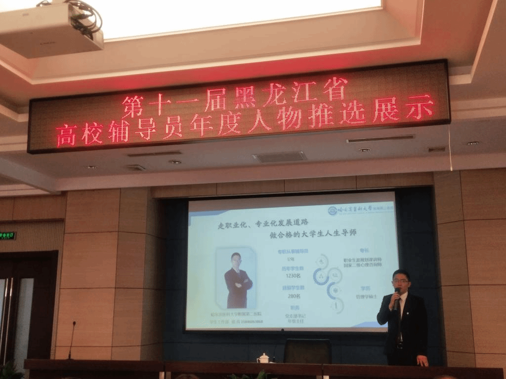 省级评选过程分为初评和终评两个阶段,初评依据参选辅导员事迹材料,采取通讯专家匿名评审方式进行;终评阶段采取参选辅导员现场工作述职和专家提问答辩的方式进行。在众多参选者中,经过两个阶段的综合记分评审,祖胥同志代表哈尔滨医科大学最终成功获得第十一届黑龙江省高校辅导员年度人物称号。