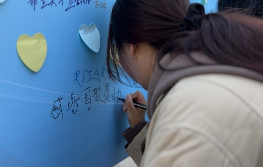 为更好了解学生的实际需求和对资助工作的期望,进一步优化资助政策和服务流程,提高资助工作的精准性和实效性。11月11日中午,学生处在食堂前广场举办“‘千言携爱行’——写下一条资助建议”活动。广泛收集学生的意见和建议,旨在深入了解学生需求,增强学生归属感,优化学生资助体系,提高资助精准度,推动我校学生资助工作高质量发展。