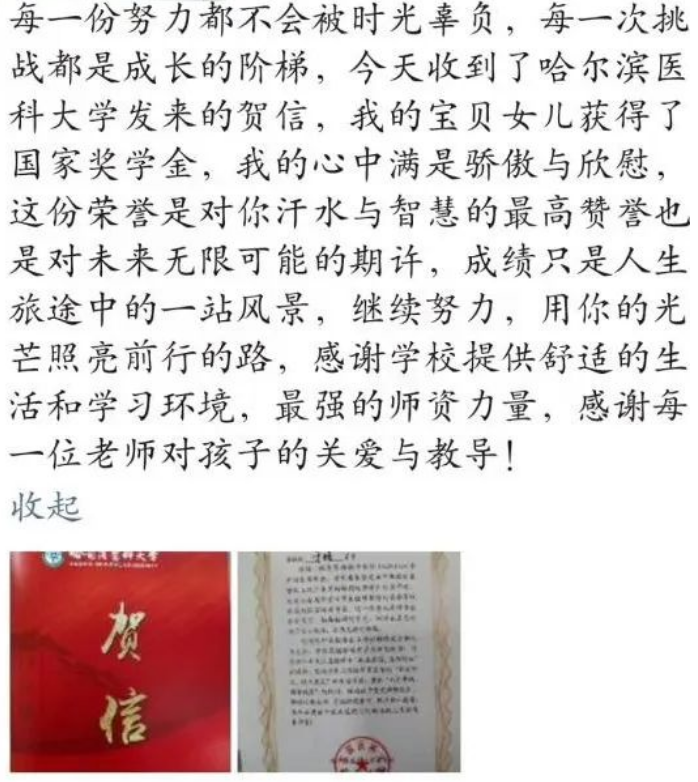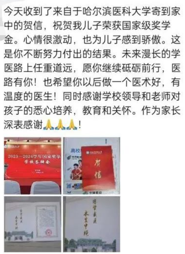 哈医资助|寄送贺信 喜报佳音——哈尔滨医科大学给获国家奖学金本科生家庭寄送贺信
