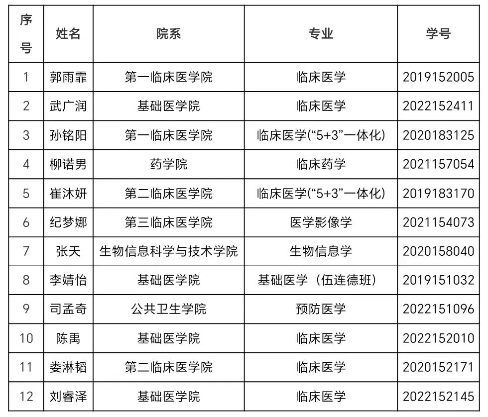 哈尔滨医科大学2022-2023学年本科生国家奖学金公示
