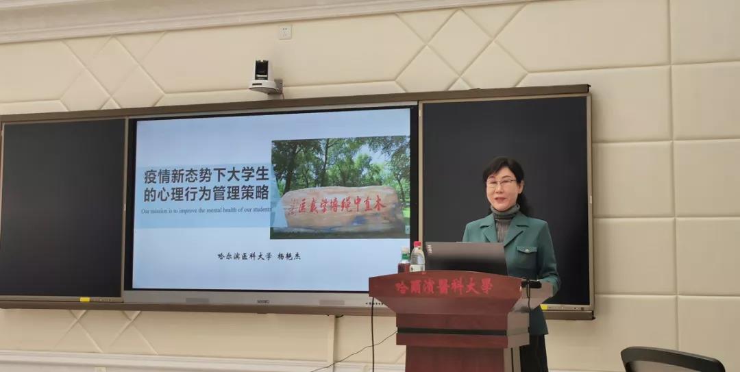 杨艳杰教授分析了哈尔滨当前所处的新冠疫情新态势,并从情绪、行为、学习、新生适应问题、研究生学业受阻带来的问题等方面对同学们在当前新冠疫情形势下出现的心理状况进行全面的剖析,并设身处地、从多方位多角度为同学们提出科学正确的行为管理策略。杨艳杰教授的讲座细腻和蔼,内容丰富,操作性强,引起了同学们的情感共鸣,受益良多。