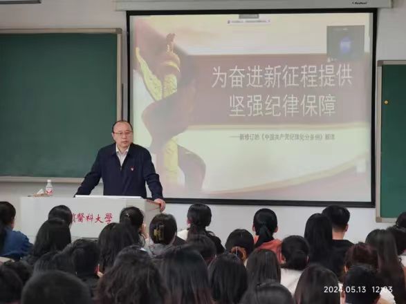 公共卫生学院、卫生管理学院 学生党总支组织全体学生党员以自学的形式认真研读《条例》,为此每一位党员制定了符合自己实际情况详细的学习计划。学院党委分党校邀请哈尔滨医科大学副校长、党委常委、公共卫生学院党委书记高彦辉在发展对象培训班面向公共卫生学院、卫生管理学院全体师生讲授了“为奋进新征程提供坚强纪律保障——新修订的《条例》解读”专题党课。