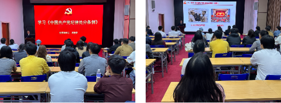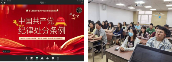 第一临床医学院 各学生党支部通过支部大会和主题党日开展党纪研读学习活动,全体学生党员在研读会上轮流朗读《中国共产党纪律处分条例》,并采取新旧对比、逐条讨论的方式开展学习。